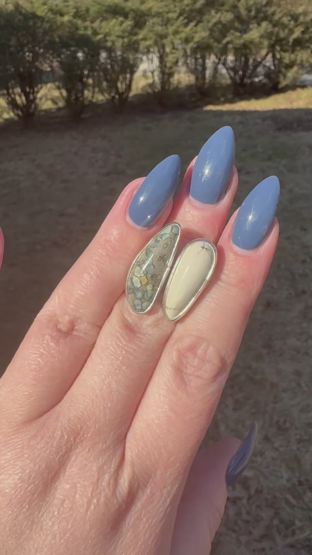 Blue Boy Variscite and Ivory Creek Variscite open shank ring size 6.25