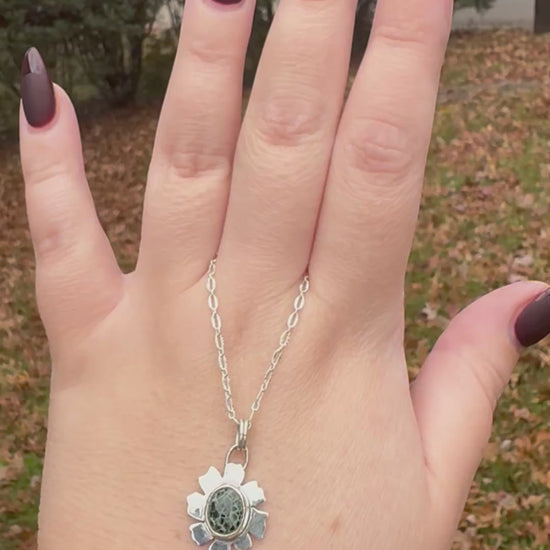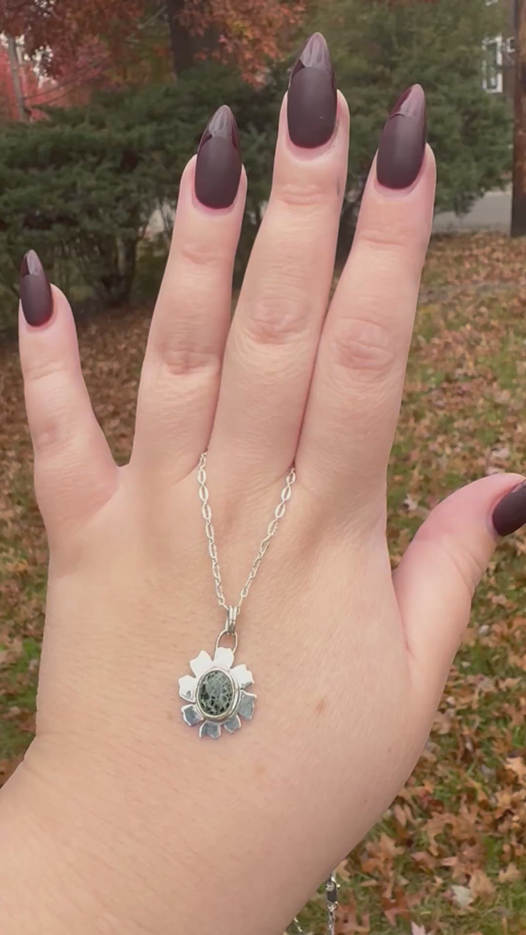 Michigan greenstone floral pendant necklace on sterling silver chain